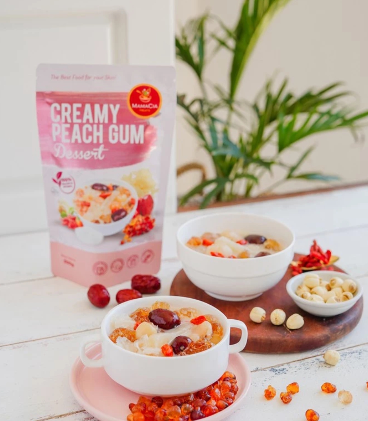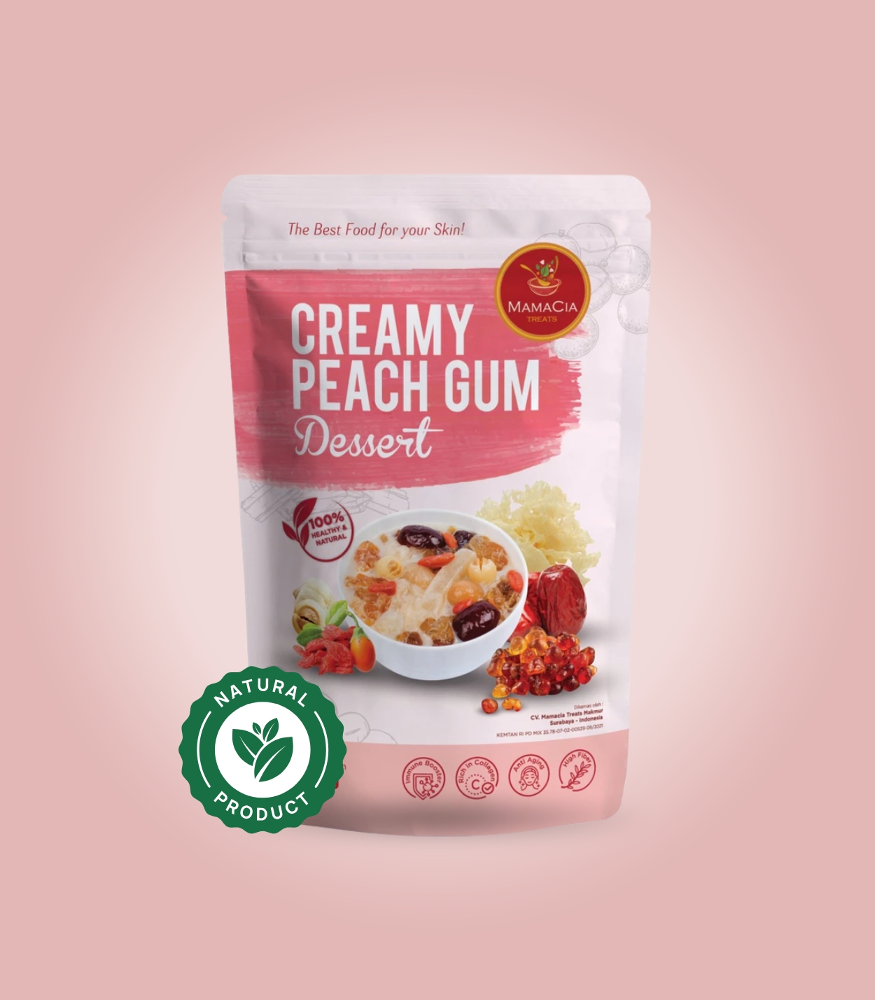 A rich, creamy beauty dessert made with collagen and natural peach gum to support smooth, glowing skin and hydration.